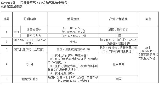 压缩天然气加气机检定装置主要技术参数