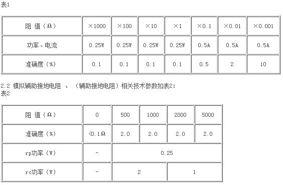 2.1 模拟接地电阻(标准电阻器)相关技术参数如表1: